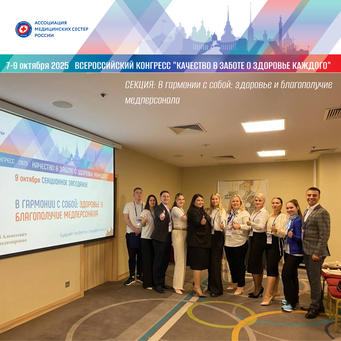 СЕКЦИЯ «В гармонии с собой: здоровье и благополучие медперсонала», объединила специалистов из 8 регионов России — от Астрахани до Карелии.